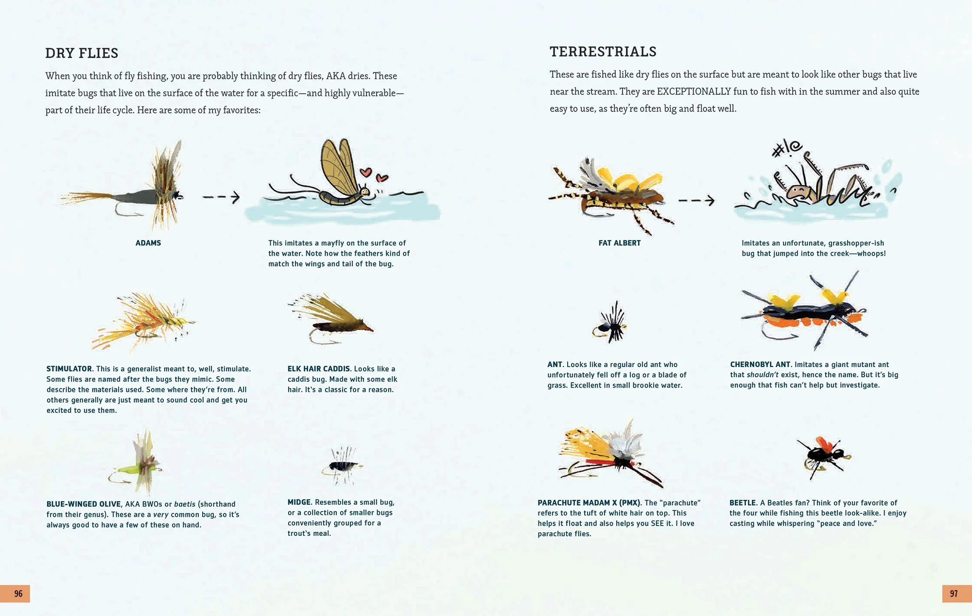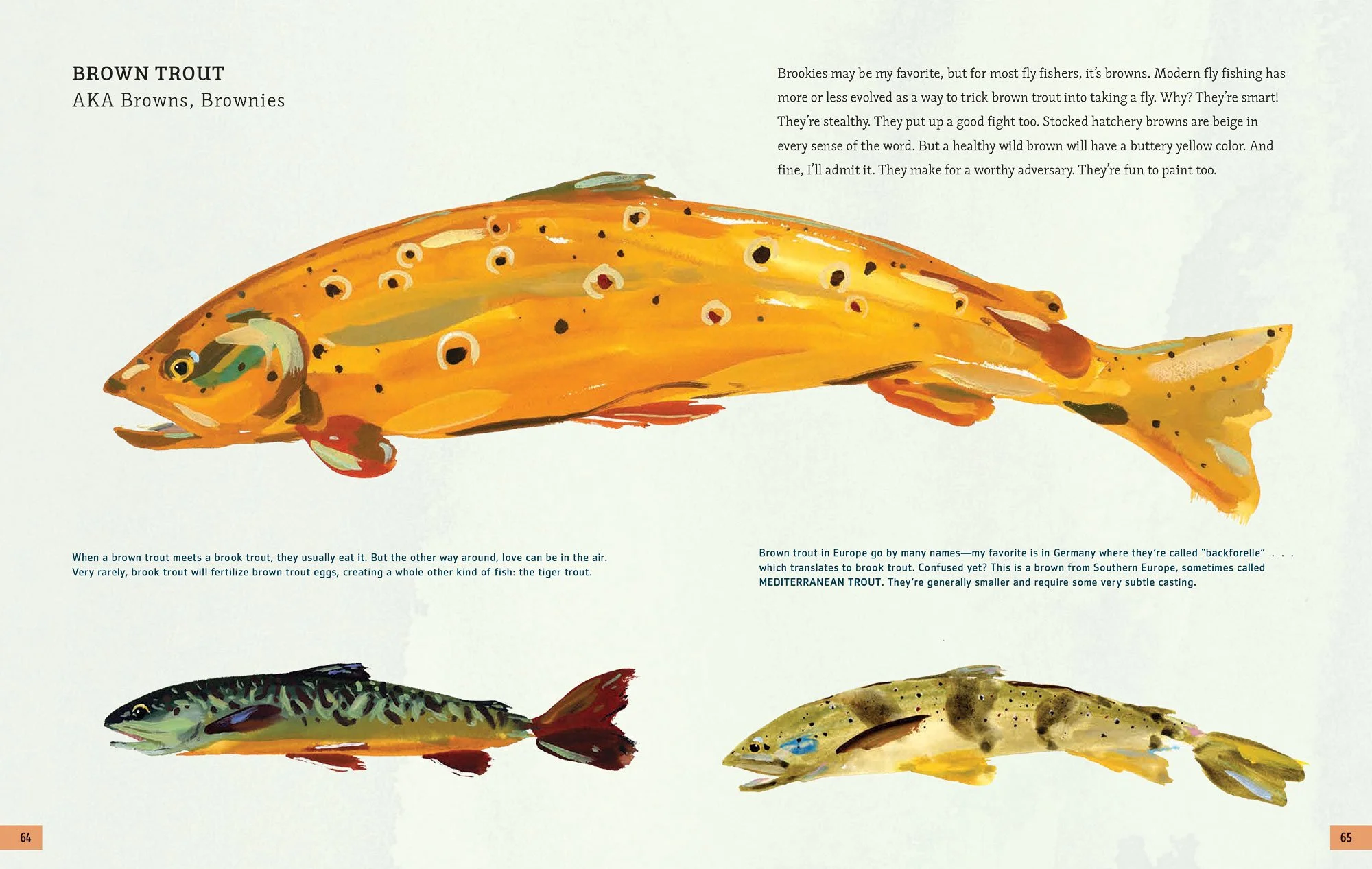 Living in the Catskills, I've gotten to take so many friends out fishing. My friends come from New York and they are fly-fishing curious. I had my spiel about the basic setup: “This is the rod, this is the tippet.” Meanwhile, over the last 15 years I started painting fish. I wanted to make a book where I can get people into the sport through painting all these things I love. I wanted to make an accessible book that anybody could pick up, whether they love fishing and they want to revisit spots, or they're curious and they’re wondering, “What do these terms mean? What do the fish look like?”
