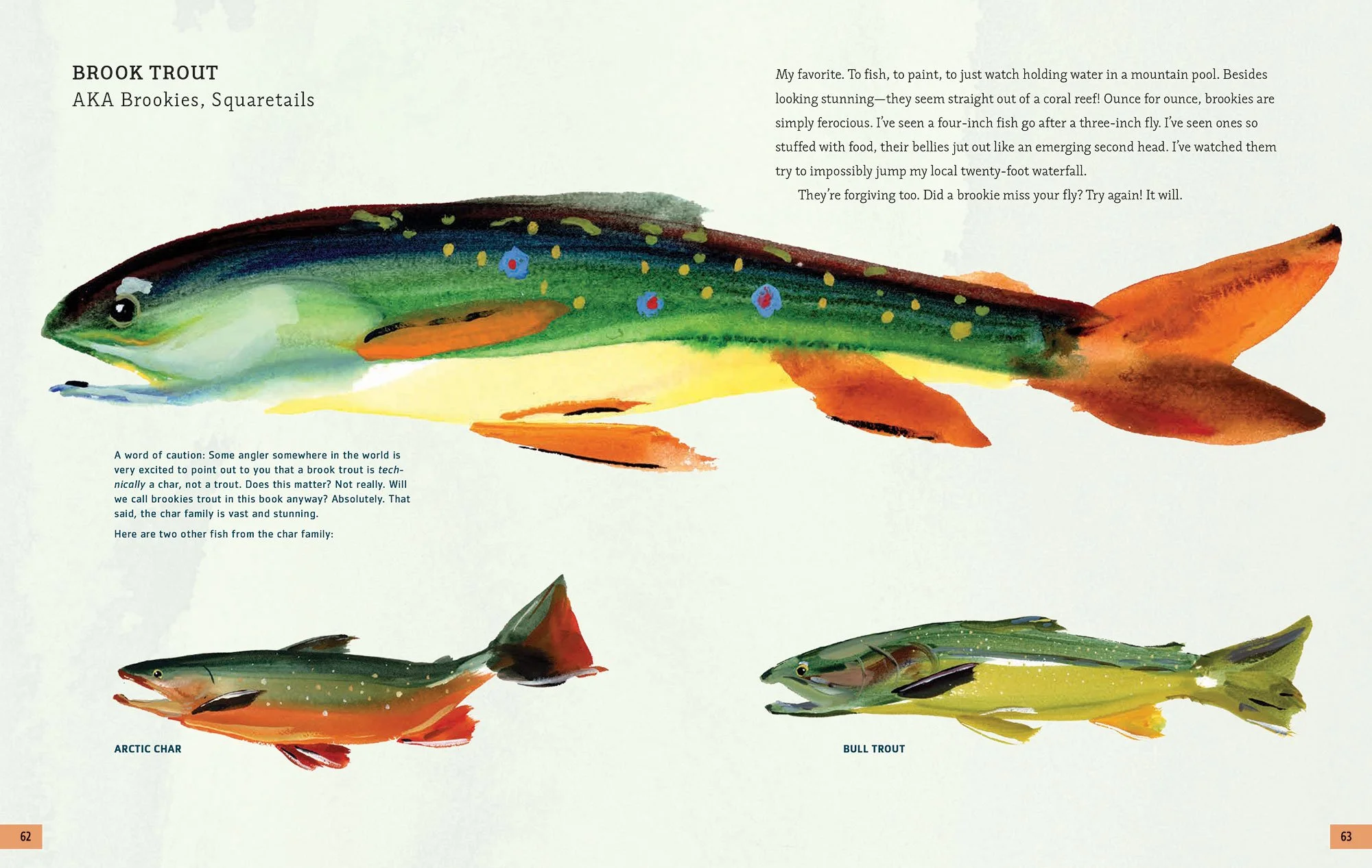 Oh, big question! I painted a lot of fish that I'd never painted before. I paint a lot of trout, but I really wanted to go deeper into the other fish you can catch with a fly rod. That was actually one of the big topics that Tom Rosenbauer talked about when I interviewed him for the book, especially in terms of fishing when it's warmer and you want to target other species. You really want people to think, what is the appropriate fish to target at this time of year?