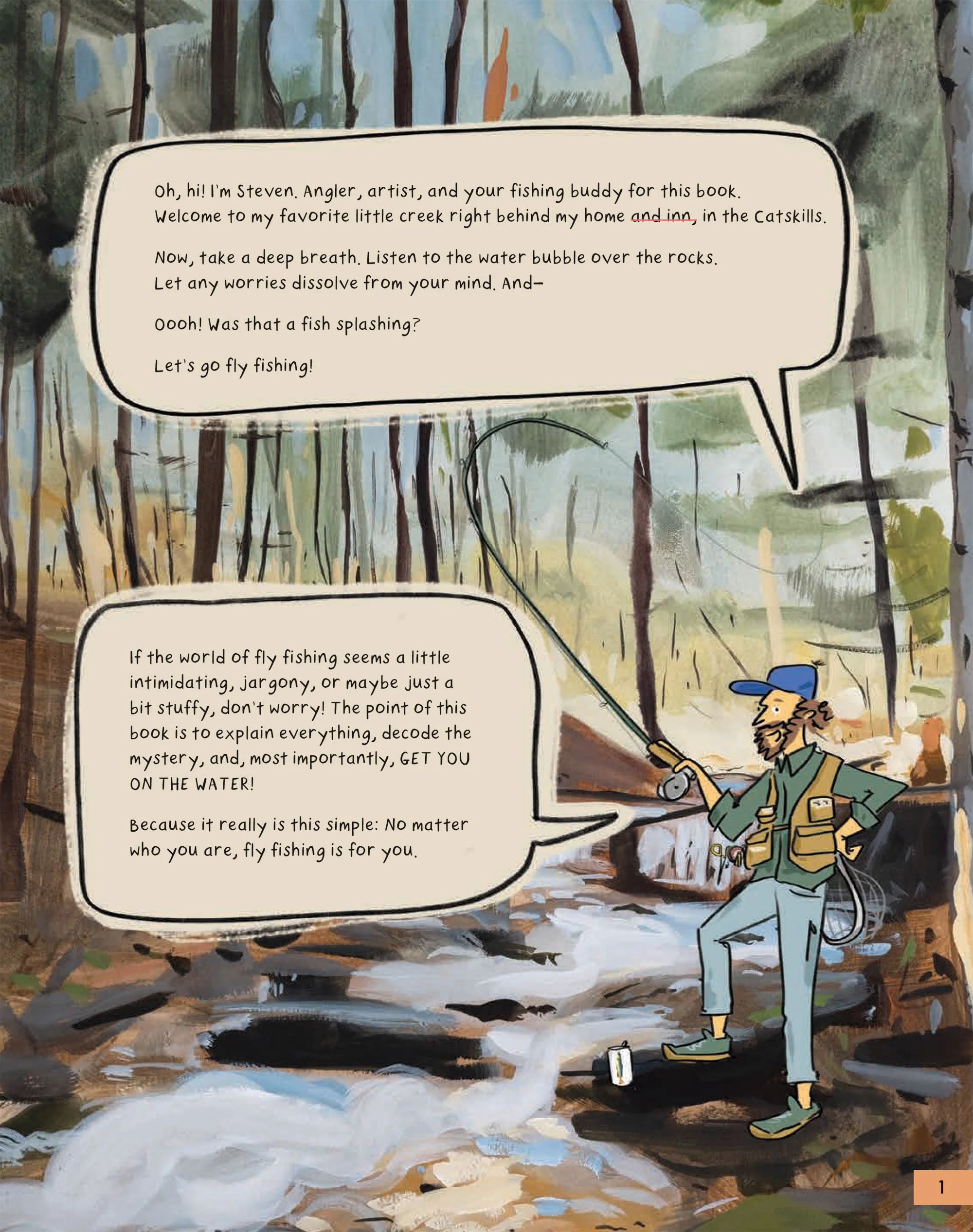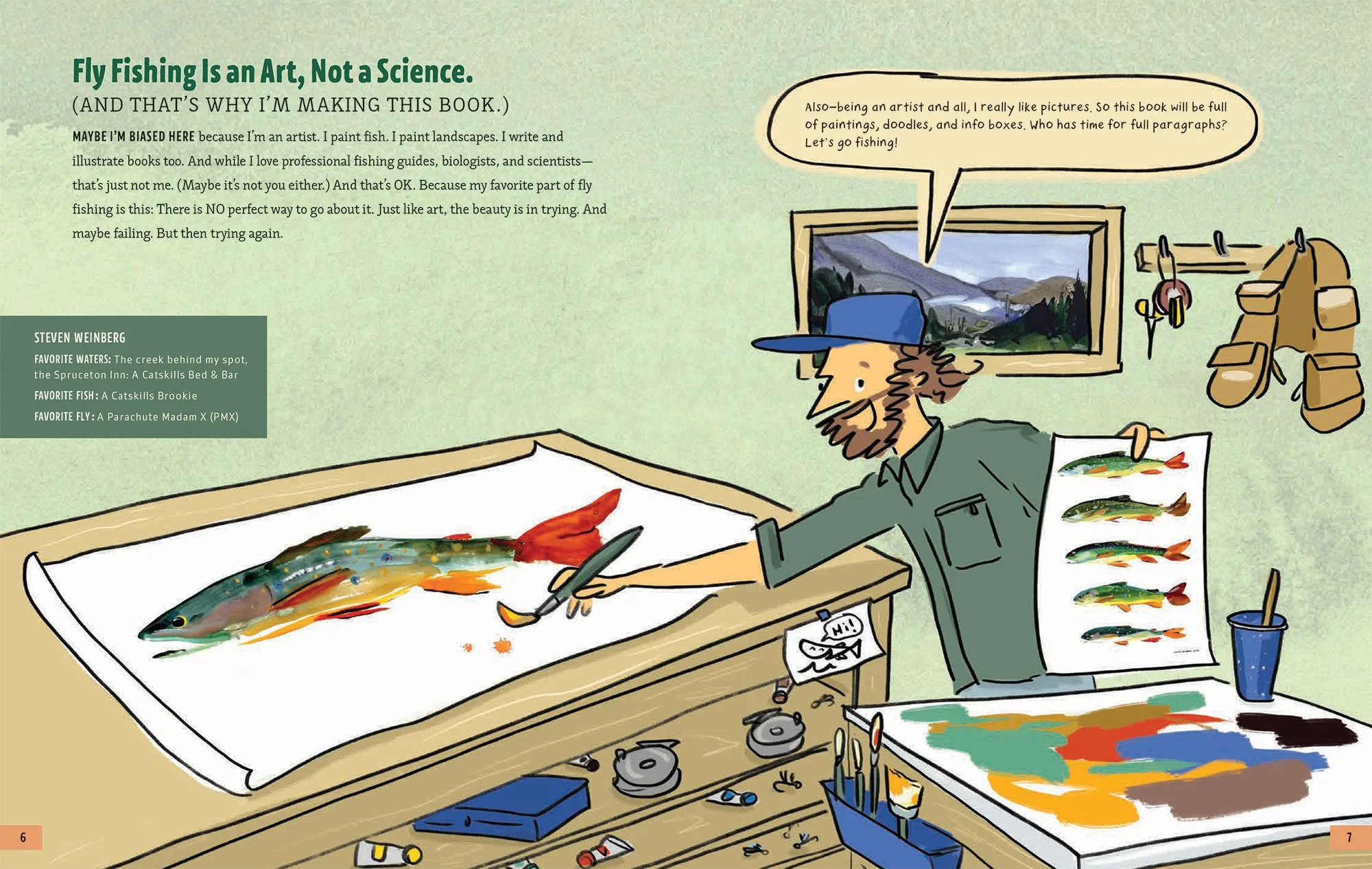 Steven Weinberg: I do many jobs. Like you, I’m an artist. I'm also an author, an illustrator, an innkeeper, and we also have an artist's residency at the Spruceton Inn. With all those jobs, but especially with the inn, I spend a lot of time showing guests the creek and showing them bits of the water and how to cast a rod. I’m not a guide, but at a certain point I wanted to put all these elements together. That’s what The Fly Fishing Book is all about. I get to write, make art, and share fly fishing with people.