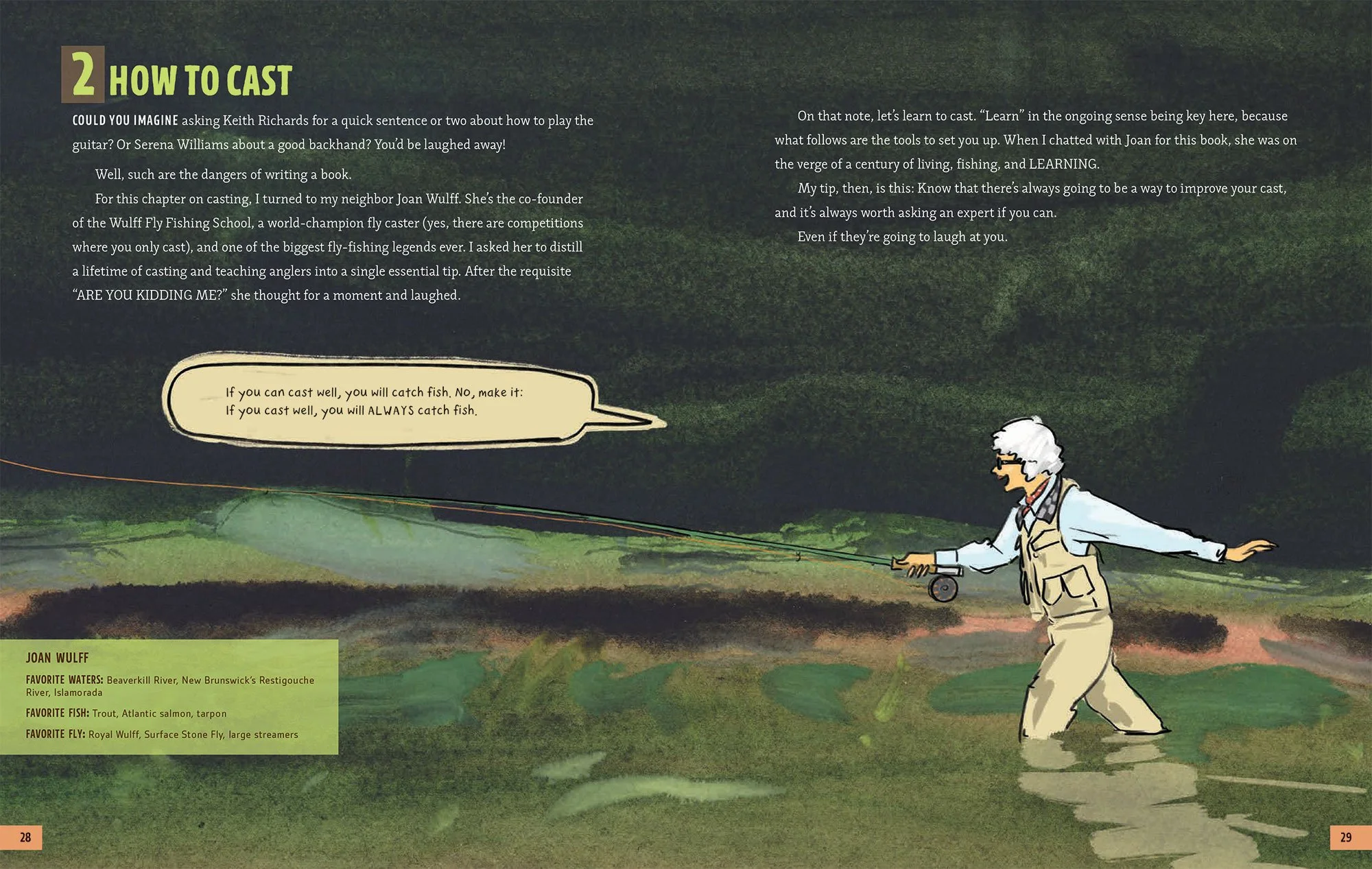 I only know so much about fly fishing, so I reached out to everyone I knew and everyone I wanted to know. The book includes everyone from Joan Wulff—I’ve gotten to meet her many times while living upstate—to folks like Tom Rosenbauer, who was just so friendly. Plus, David Coggins, Monte Burke, and Brandon Dale. As much as I'm the one yapping away, I tried to get as many voices in the book as possible. It’s like a good day of fishing: You get a lot of tips; it’s a collaborative effort.